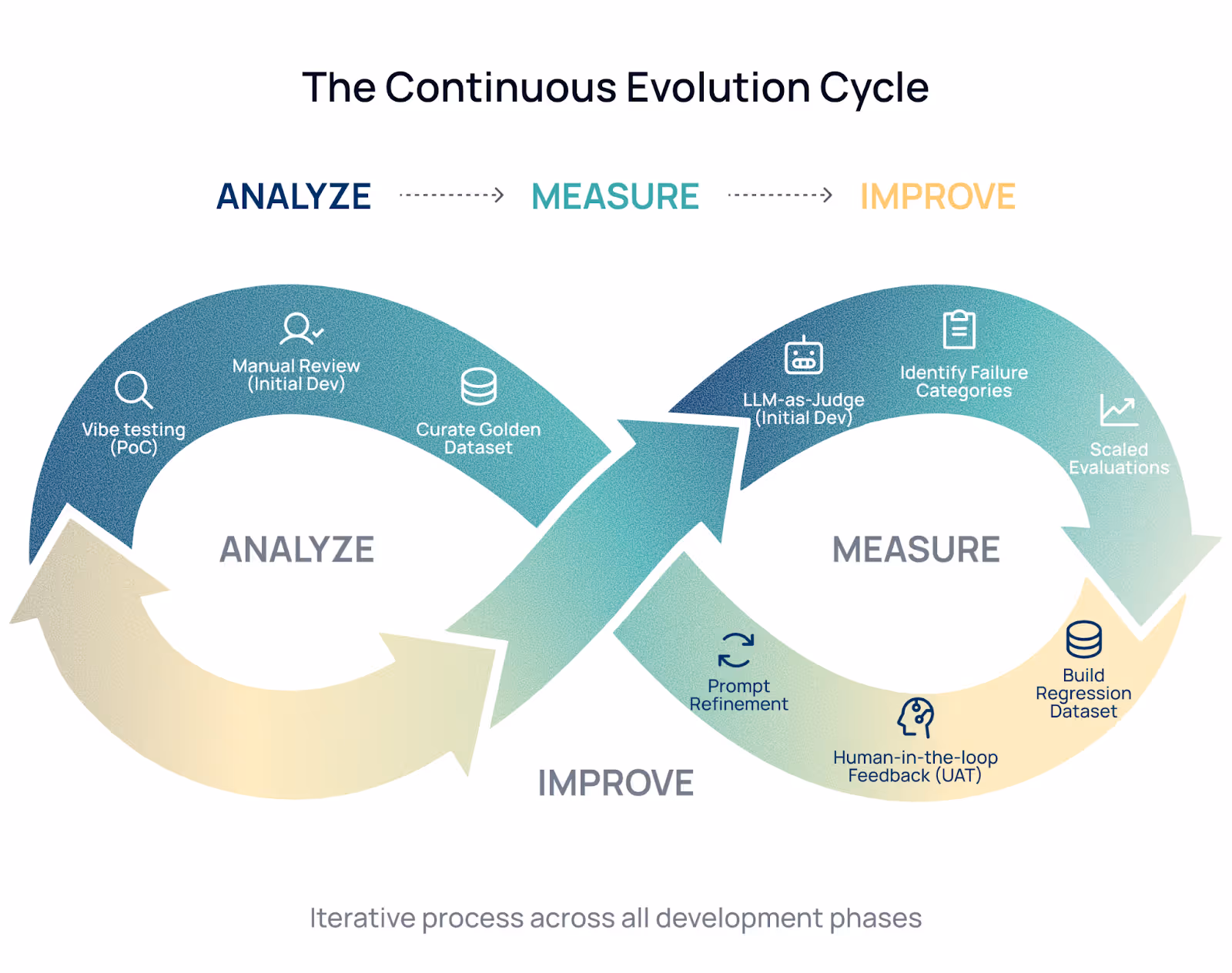 We phased our development to ensure we were building on solid ground, moving from "Analyze" to "Measure" to "Improve".