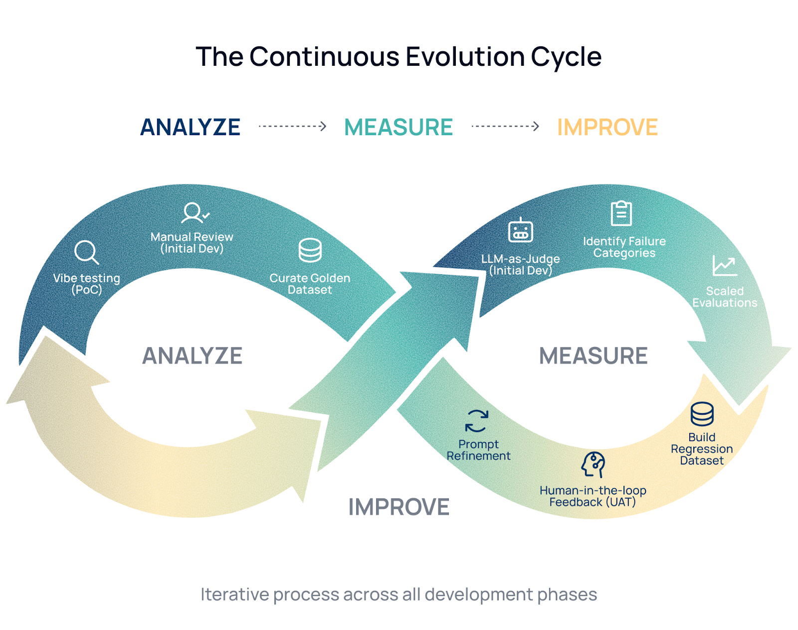 We phased our development to ensure we were building on solid ground, moving from "Analyze" to "Measure" to "Improve".