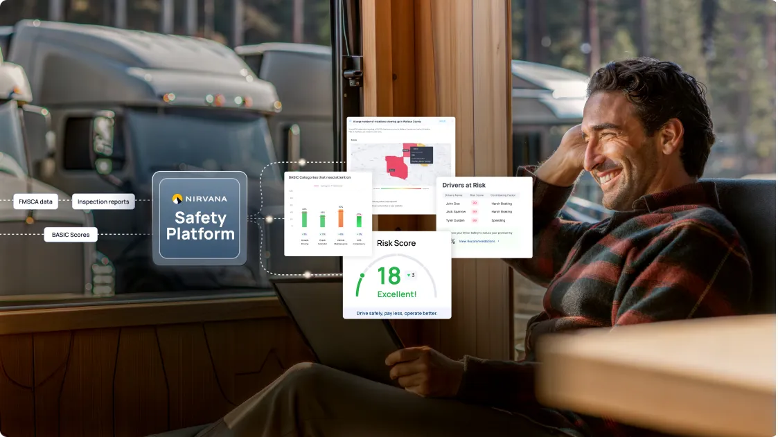Save up to 20% and improve fleet safety with Nirvana’s industry-leading Active Safety services and Commercial Trucking insurance.